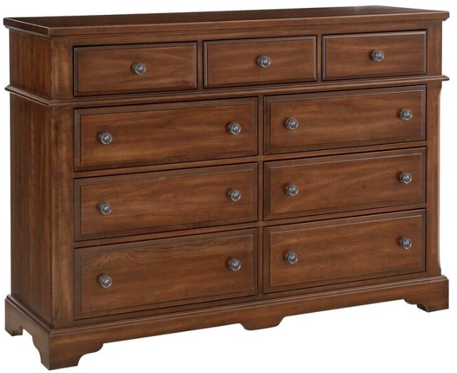 Generously scaled Nine drawer bureau featuring hammered pilasters, and intricately designed base rails. A relaxed traditional style constructed of solid cherry American-grown hardwood. Make a bold statement to your bedroom.Read More