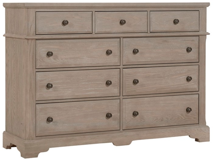 Generously scaled Nine Drawer Bureau featuring hammered pilasters; and intricately designed base rails. A relaxed traditional style constructed of Solid Oak American-grown hardwood. Make a bold statement to your bedroom.Read More