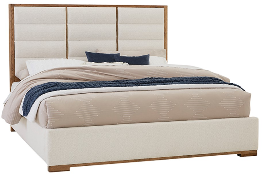 The LM Co Home by Vaughan-Bassett Crafted Oak natural/whiteking upholstered panel bed by Ben & Erin Napier blends timeless craftsmanship with modern comfort. Constructed from solid American white oak, this bed features an elegant upholstered headboard in a soft oatmeal fabric, framed by warm natural wood tones for a cozy yet sophisticated look.Read More