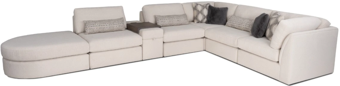 The Smith Brothers Customizable 209 7-Piece Sectional offers versatile comfort with a built-in console and bumper chaise. Tailor this sectional to your space with modular pieces, ensuring ample seating and style, perfect for any living area or entertainment room.Read More