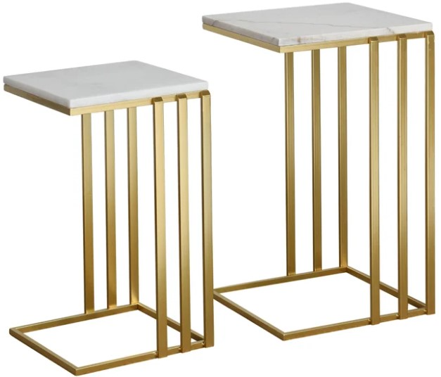 Elevate your living room with this Stylecraft 2-Piece Gold Nested C-Table Set. Features a square table top and shown in gold finish. It's a statement piece and storage for your room.Read More