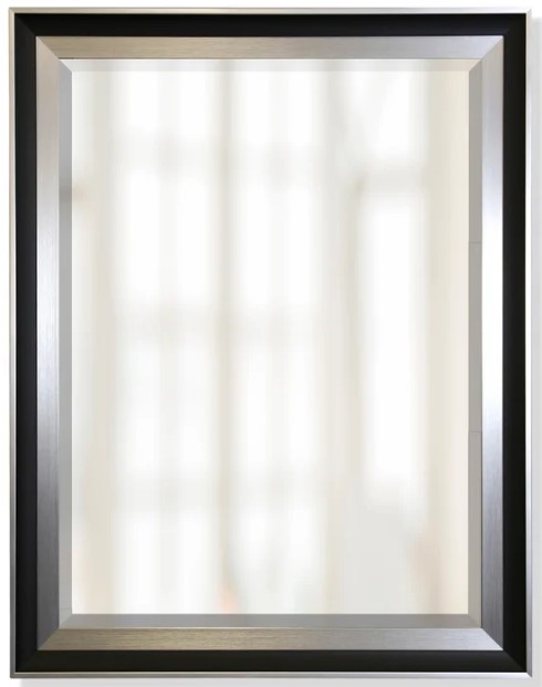 Make your home look bigger and brighter with this wall mirror. Shown in a black and silver finish, and features a beveled frame. This eye-catching piece is a perfect way to refresh your room's look.Read More