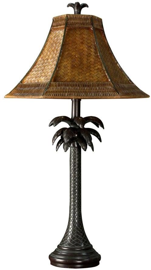 StyleCraft Palm Tree Table Lamp with rattan hexagonal shade and steel neckRead More