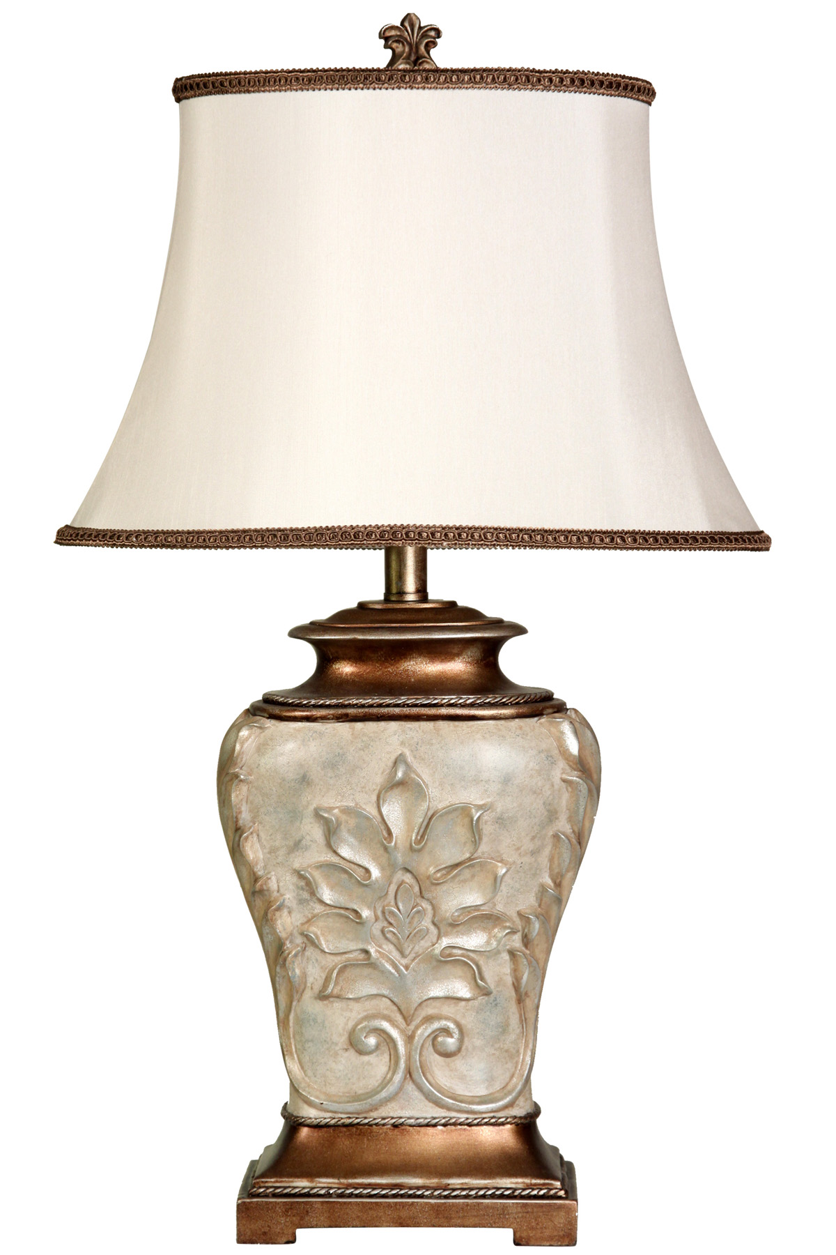 StyleCraft Table Lamp with golden accents and round bell trimmed shadeRead More