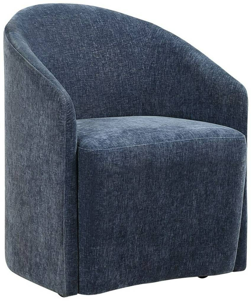 Make a statement at your dining table with the Harbor dining chair. Complete with sumptuous curves with its unique barrel back design encapsulating its seat, complete with rolling casters for ease of use. Fully upholstered in a crosshatched polyester velvet in harbor blue.Read More