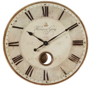 Measuring 30 inches in diameter, it features a round silhouette finished in a soft gray-beige tone, accented with bold Roman numerals and subtle distressing for vintage character. Durable and decorative, the Harrison clock adds both functionality and timeless sophistication, enhancing your space with understated elegance.Read More